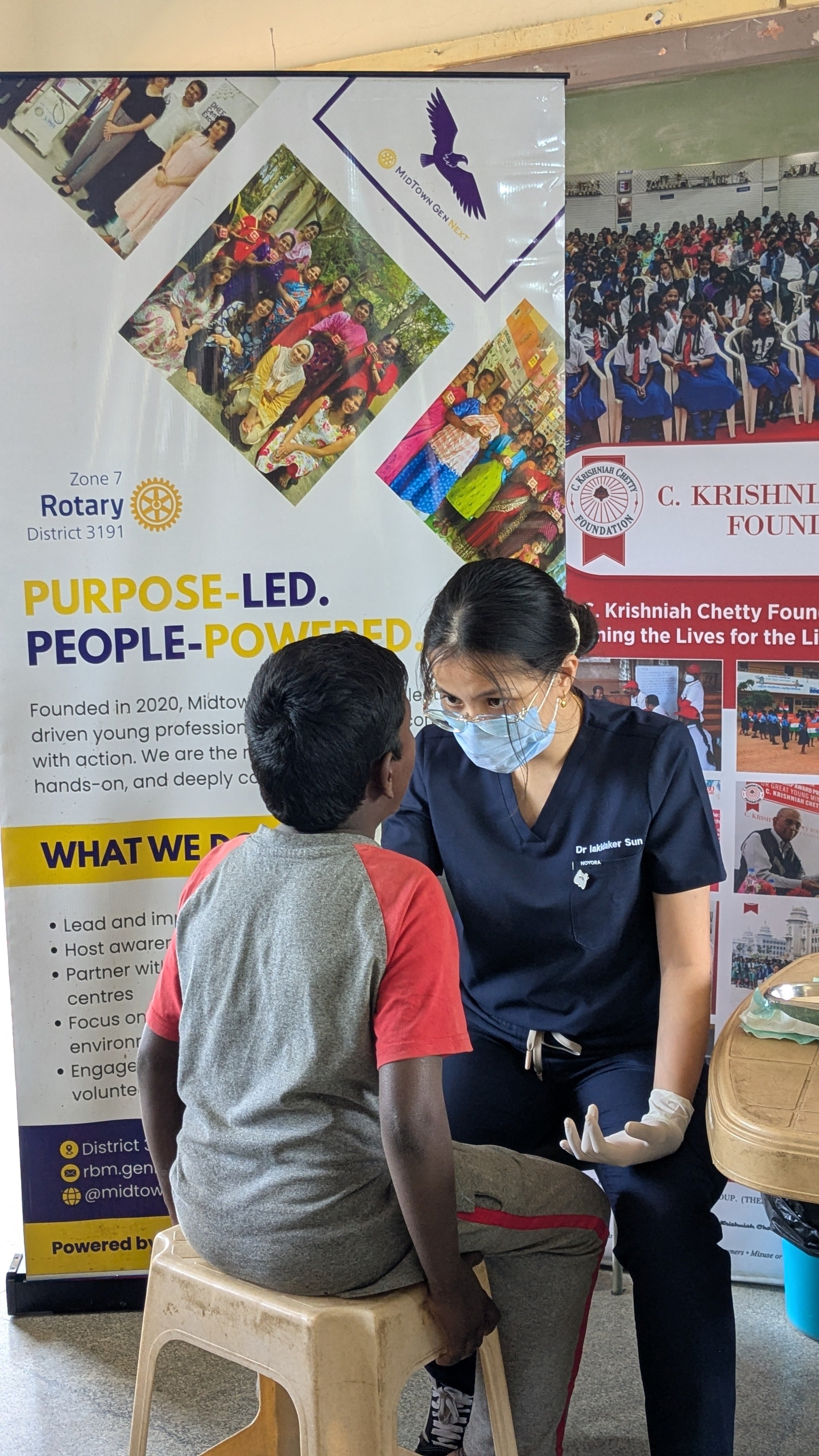 The initiative was implemented in collaboration with C. Krishniah Chetty Foundation, Ramaiah Dental College, and Nethradhama Eye Hospital. A structured medical setup was created within the school premises, dividing screening into dedicated dental and ophthalmic examination stations to ensure organized flow and individual attention for each child.